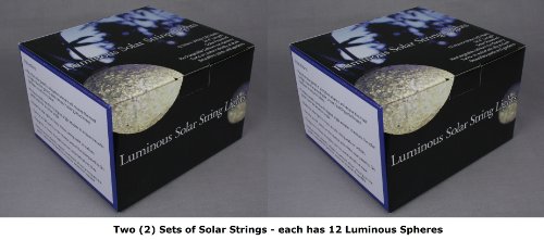 Our unique Luminous Glow Solar Strings add a warm glow to your garden and yard. This listing is for TWO (2) sets. Each set includes twelve (12) weather-proof 2.5" balls and a high-performance solar panel kit.