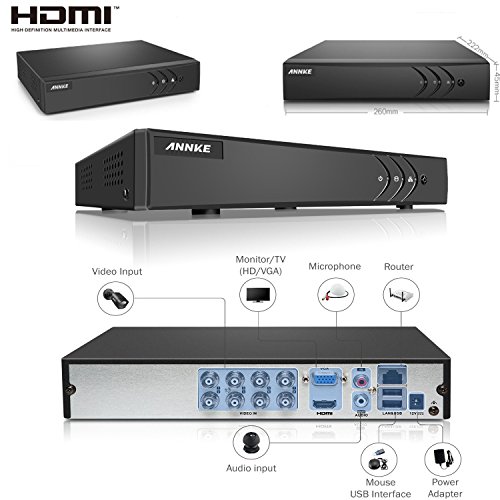 -. Feature : Newest 8-Channel 1080N digital video recorder with 720p indoor/ outdoor cameras for true day and night monitoring with 20M IR range. / Get set up quickly and easily: You could scan the QR code via mobile device using our free Annke View app (available on iOS/Android). Say bye-bye to traditional, complex setup processes that require you to have a degree in networking. It can be quickly and easily setup by anyone. Instantly see live video using your computer, tablet, or phone from anywhere. / Support one SATA HDD to record for a longer time without any limitation. We have upgraded its storage capacity to max 6TB hard drive. Support USB 2.1 devices, easy backup with Network, USB hard disk, USB burner, SATA burner. / Motion detection option allows you record only when motion is detected so that you can save hard drive storage space without missing important events. / All systems CE & FCC certified with qualified power supplies. No harmful interference is produced by the device. Guaranteed for 2 Year & Free life time Tech Support.