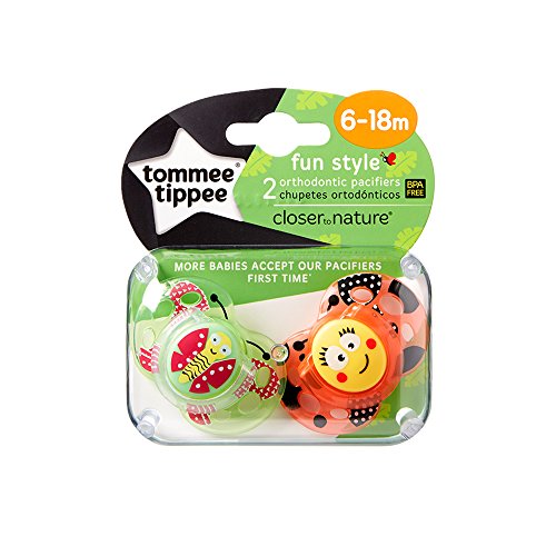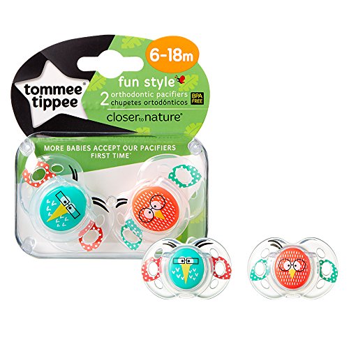 Tommee Tippee Closer to Nature Fun Pacifier, 6-18 Months, 2 Count (Colors will vary)