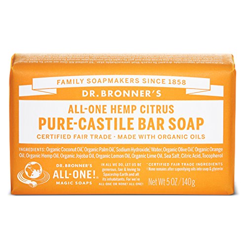 -. Title : Dr. Bronner's Magic Soaps Pure-Castile Soap, All-One h.e.m.p Citrus Orange, 5-Ounce Bars (Pack of 6)