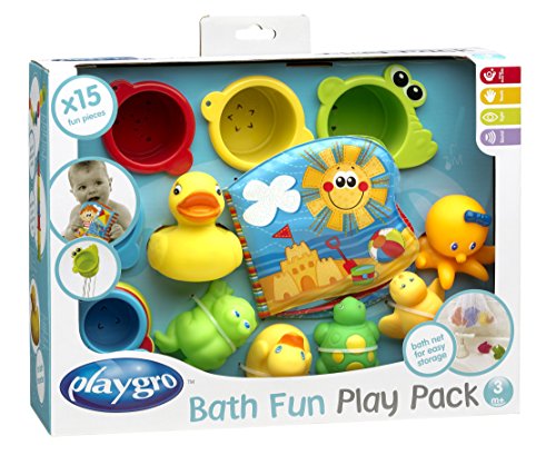Bath Fun Gift pack is sure to entertain and delight baby in the bath; Baby can practice gross motor skills by holding and grasping the cute bath squirties