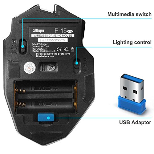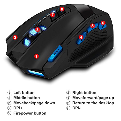 Wireless and Wired Rechargeable Gaming Mouse, DLAND ZELOTES 2.4G Professional Computer Optical Game Mice with Adjustable 2500DPI for Gamer PC Laptop Desktop Notebook.