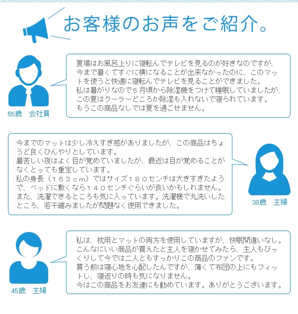 ■商品説明 夏の定番、冷感ジェルマットが、より使いやすくなって登場。重たくて分厚い定番のジェルマットではなく、薄くて軽いジェルマットだから、持ち運びも収納も楽々。様々なサイズを展開しているので、枕からイス、ベッドまで多様なシーンで活躍します。90×90は、座っている床に敷いたり、シングルベッドの一部分に敷いたり、部分的にひんやりしたい時に最適です。■本体サイズ [外寸]幅90.0×奥行90.0cm■組立時間(目安)(大人2人) 完成品■キーワード ひんやりマット 冷感マット 冷えすぎない 90×90 冷感 敷きパッド ひんやり敷マット ひんやりグッズ ひんやりジェルマット ひんやりマット ひんやりパット ジェルマット ジェルパット ジェルシート クールマット クール敷きパッド 接触冷感 赤ちゃん 冷却マット