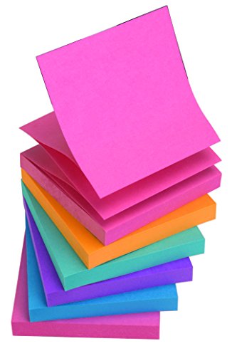 Staples Stickies, Pop-up Sticky Notes, 3x3, 6 Pads of 100 Sheets Per Pack, Assorted Bold Colors.