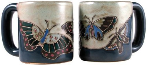 One (1) MARA STONEWARE COLLECTION - 16 Oz Coffee/Tea Cup Collectible Tan Dinner Mugs - Butterfly Design
