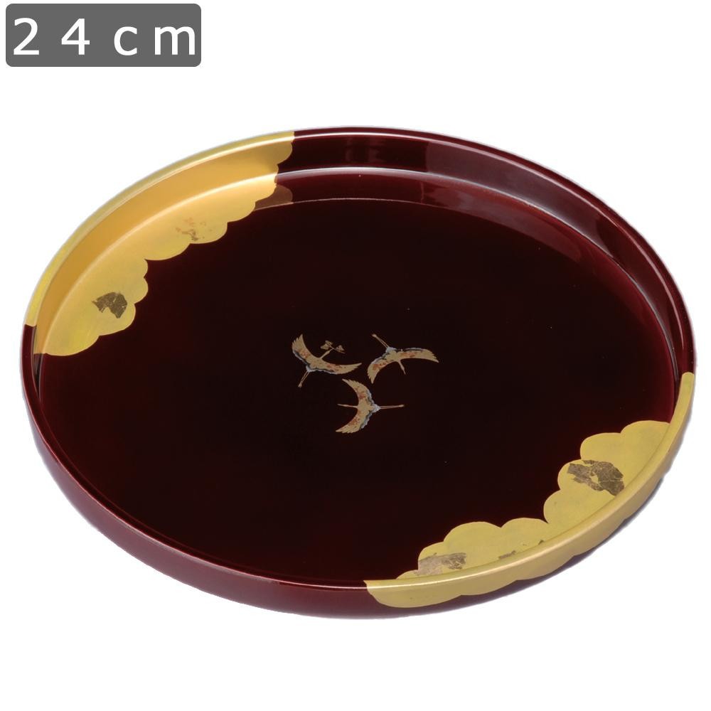 お正月や来客時、贈り物にもぴったりな丸盆です。 製造国:日本 素材・材質:ユリア樹脂 商品サイズ:Φ24×1.8cm ※サプライヤー直送品 ご注文後2~3営業日後の出荷となります【商品名】丸盆 雲居路 舞鶴 24cm 0093069