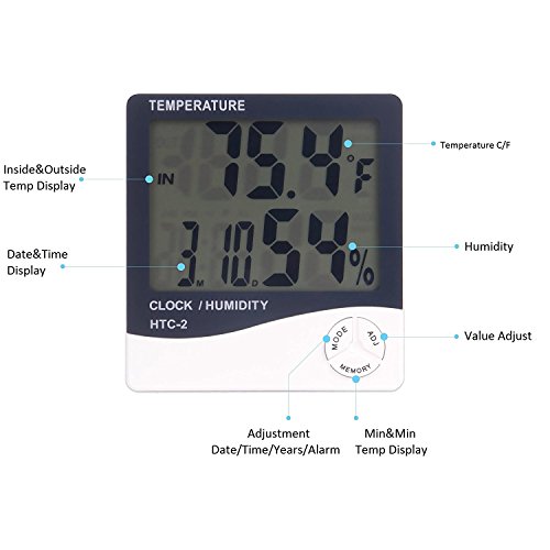 Generic HTC-2 Large-screen Dual Hygrometer Indoor And Outdoor Temperature + Humidity