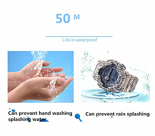 WATERPROOF:50M Water Resistant.No Problem for HANDWASH, SWIMMING and SHOWERING etc.NOTE:Please DO NOT press any buttons in the water or wear this watch for longtime underwater activities.and too much water contact or usage in extreme Hot or Cold temperature will shorter watch life.