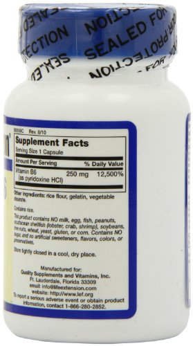 -. Binding : Health and Beauty -. Brand : Life Extension -. EAN : 0737870153511 -. Feature : Vitamin B6, or pyridoxine, is an important component of the coenzyme PLP, which metabolizes amino acids / Participates in more than 140 enzymatic reactions / Aids in protein metabolism, conversion of tryptophan to niacin, and neurotransmitter function -. IsAdultProduct : 0 -. Label : Life Extension -. LegalDisclaimer : * These statements have not been evaluated by the Food and Drug Administration. This product is not intended to diagnose, treat, cure or prevent any disease. **Always refer to the manufacturer's label on the product for description, recommended dose and precautions. -. Manufacturer : Life Extension -. MPN : 00556 -. NumberOfItems : 1 -. PackageQuantity : 1 -. PartNumber : 00556 -. ProductGroup : Health and Beauty -. ProductTypeName : HEALTH_PERSONAL_CARE -. PublicationDate : 2011-01-12 -. Publisher : Life Extension -. Size : 100 -. Studio : Life Extension -. Title : Life Extension Vitamin B6 250 Mg, 100 V Caps -. UPC : 737870556107
