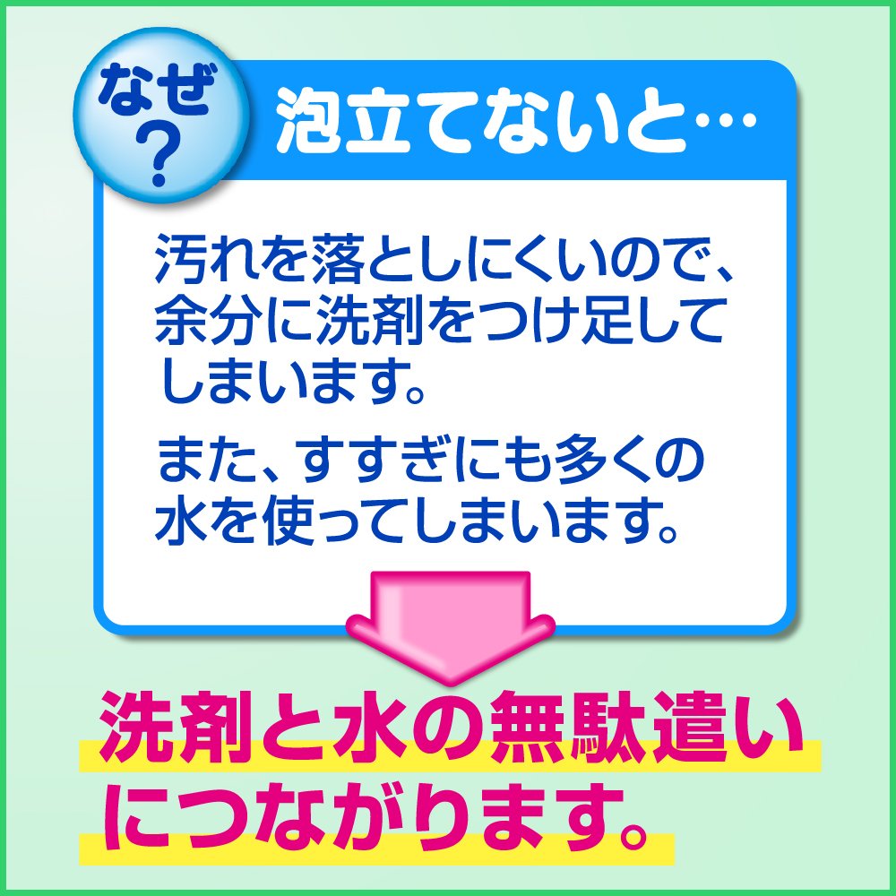 ●サッと泡切れてすすぎも簡単洗うときはたっぷり泡立ち、すすぎのときには素早く泡切れて簡単にすすげます。