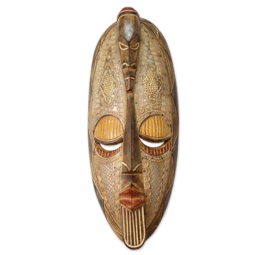 NOVICA Decorative Large Wood Mask, Beige 'Two Heads Are Better Than One'