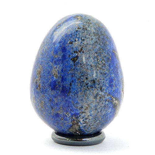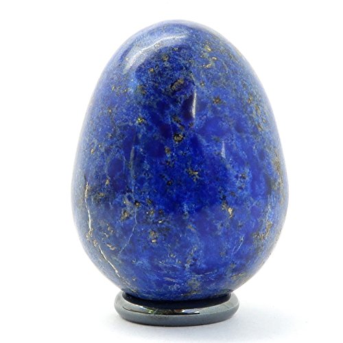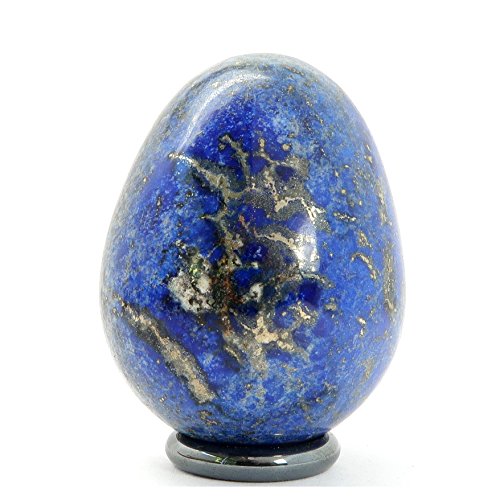 One-of-Kind: Natural Lapis Lazuli is polished into your new crystal healing egg. Lapis is a royal blue crystal shimmering with gold flecks of iron Pyrite and white bands of Calcite. Display the unique egg on the included metallic Hematine ring stand or hold it during meditations.