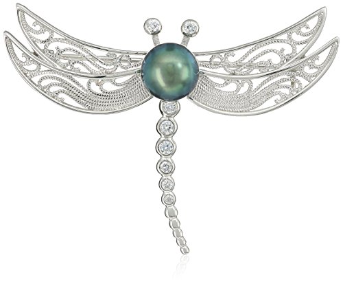 -. Feature : Items containing natural stones may have slight variances in size, shape and color / Sterling Silver Rhodium Plated / Genuine Freshwater Pearls / Dragonfly Brooch / Pearls