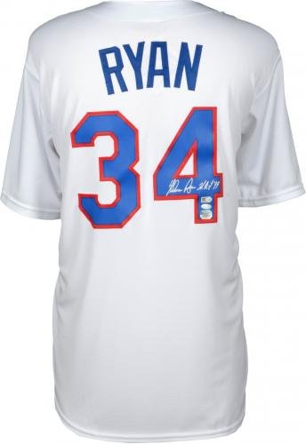 Nolan Ryan Texas Rangers Autographed White Cooperstown Collection Replica Jersey with HOF 99 Inscription - Fanatics Authentic Certified