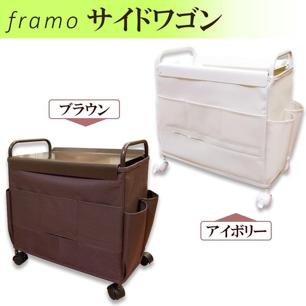 たくさんのポケットやティッシュホルダーがついた便利なワゴンです。キャスター付きで移動もラクラク!! |