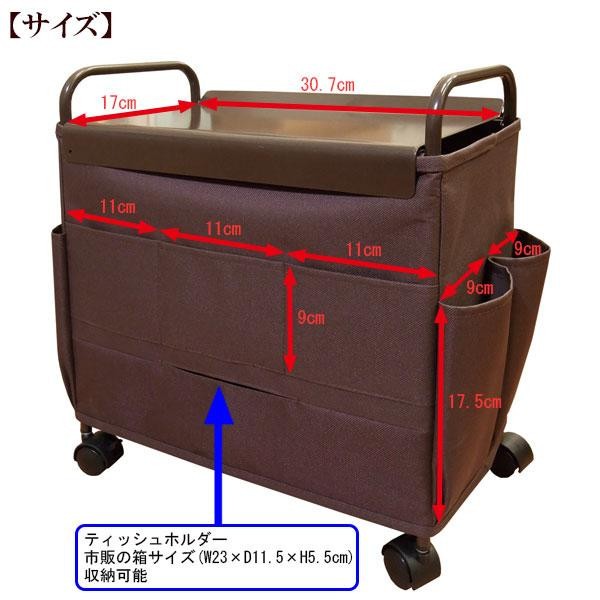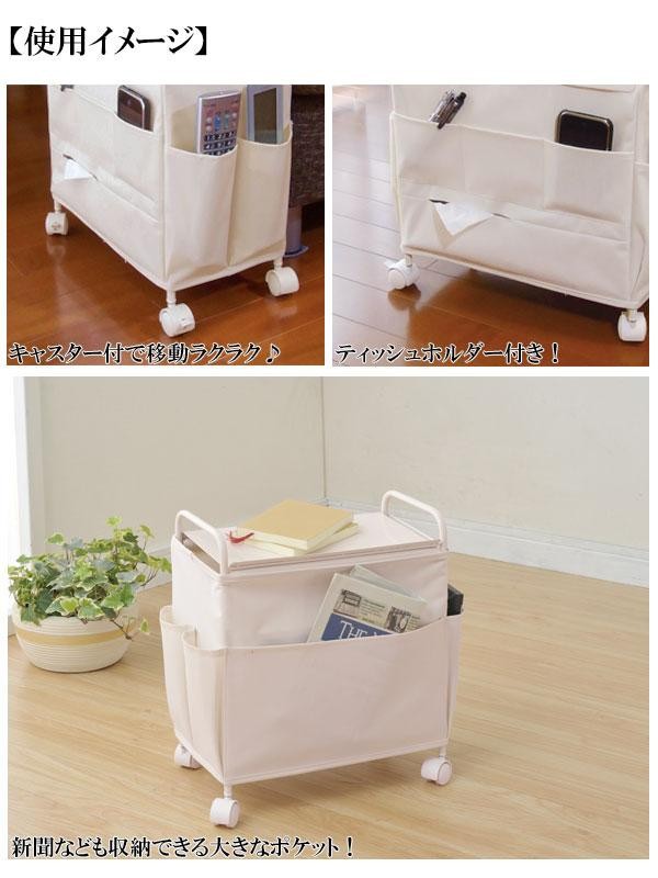 | たくさんのポケットやティッシュホルダーがついた便利なワゴンです。キャスター付きで移動もラクラク!! |