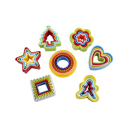 Razou Set of 7 (Total 37 Pcs) Cookie Cutters Set with Multi-size & Multi-shape & Multi-color for Festival Baking or Sandwich / Fruit / Biscuit Fondant Cutter (7 Set)