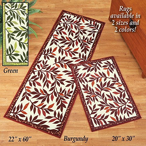 Studio : Collections Etc Publisher : Collections Etc Product Description Two-Tone Leaf Accent Rug Burgundy 20" X 30", Burgundy, 20" X 30" Description Available in 2 colors and 2 sizes, this beautiful accent rug features a two-tone leaf design against a white background with coordinating borders in burgundy or sage green. Skid-resistant backing. Hand wash. Nylon and latex; imported. Color available in Burgundy or Green. Size available in 20" x 30" or 22" x 60". About Collections Etc's Accent / Area Rugs Our wide selection of floor mats includes great options for the whole house. From indoors to outdoors, our collection includes braided mats, cushion mats, coir bristle mats, hooked mats, and more! Our cushion and braided floor mats are perfect for the kitchen or laundry room. They offer comfort for your feet while cooking, washing dishes, or doing laundry. And with our wide variety of colors and designs, you're sure to find one that would look great with your decor.