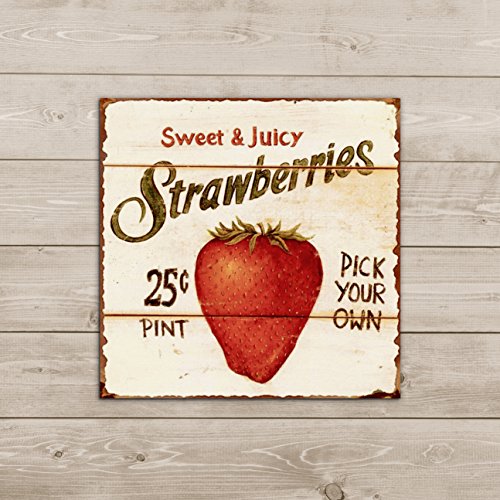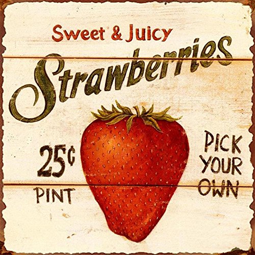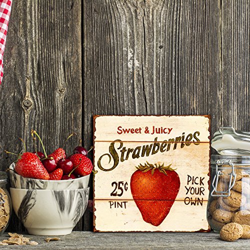 Barnyard Designs Strawberries Pick Your Own Retro Vintage Tin Bar Sign Country Home Decor 11" x 11"