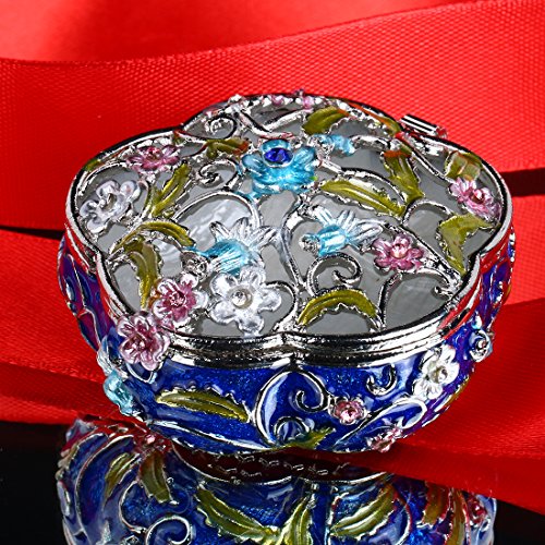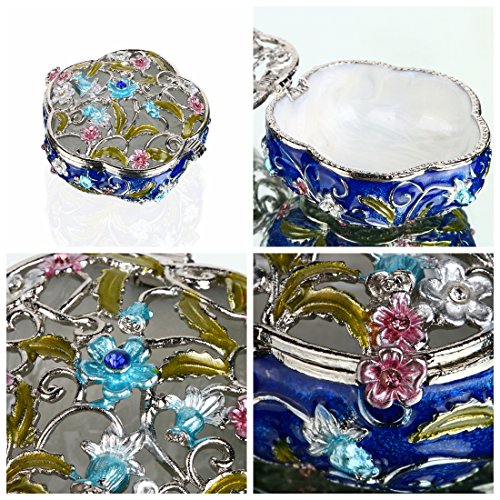 YUFENG Hinged Trinket Box Jeweled Hand-painted Patterns Jewelry Box Bejeweled Box Collectible for Women (flower)