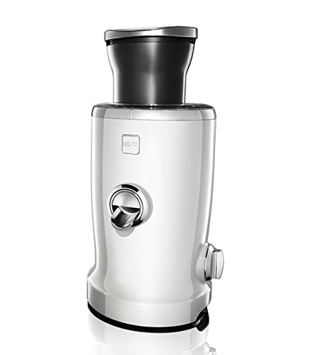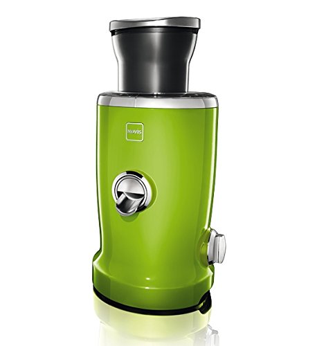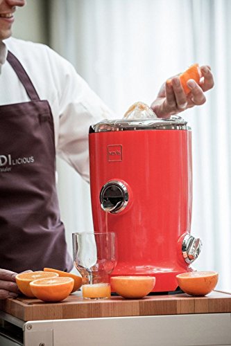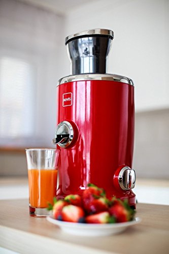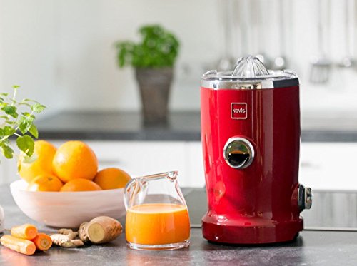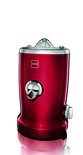 A world first in the field of juicers. The Novis Vita Juicer, combines four functions in a single unit: Juicing, Pressing, Pureeing and Vitatec ( A combination of centrifuge & citrus press). The Novis Vita Juicer is a premium multi-functional product developed in Switzerland for a natural and healthy lifestyle. Its high-quality manufacturing, innovative technology, product design as well as the responsible use of materials make the Novis Vita Juicer a world first in the field of kitchen appliances. This multifunctional juice is characterized by the following product advantages. Multifunction. Centrifuge, citrus press, puree/smoothie function, Vitatec Vitatec. Thanks to the innovative combination of citrus press and centrifuge, noticeably more nutrients remain in the juice, which also has a wonderfully smooth consistency. (patent-protected) Citromax. Engages the citrus press to yield maximum extraction of juice with pulp from oranges, limes, lemons, grapefruit with no effort. (Patented) simple, easy-to-operate spout prevents the flow of juice and any drips. Easy cleaning. All of the parts that come into contact with the juice can be easily removed and cleaned in a dishwasher. In particular, the centrifuge can be easily dismantled into two parts for quick rinsing and washing - an absolute world first. Widest feed chute. Thanks to its special design, fruit and vegetables can be fed into the centrifuge very easily, without any effort, unlike conventional juicers. The unique cutting disc pulls in fruit and vegetables and cuts and shreds them, generating maximum juice extraction. Auto speed. The Novis Vita Juicer has only one switch (On/Off). This intelligent device regulates the speed and power, and reacts automatically to different pulp consistencies, without having to be adjusted manually. The Novis Vita Juicer comes in a variety of beautiful, vibrant colors. Product Dimensions: 8.6" L x 9.0"Wx 16.9"H.Weight is 16.5 lbs. Warranty 10 years on the motor, 3 years on the parts.Feature