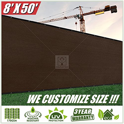 ColourTree 8' x 50' Fence Privacy Screen Windscreen Cover Fabric Shade Tarp Netting Mesh Cloth Brown - Commercial Grade 170 GSM - Heavy Duty - 3 Years Warranty - CUSTOM SIZE AVAILABLE