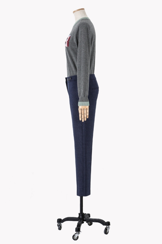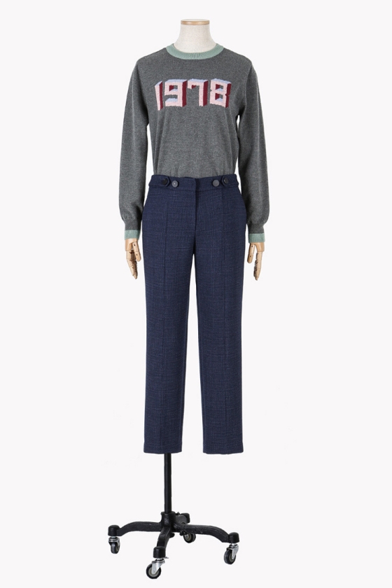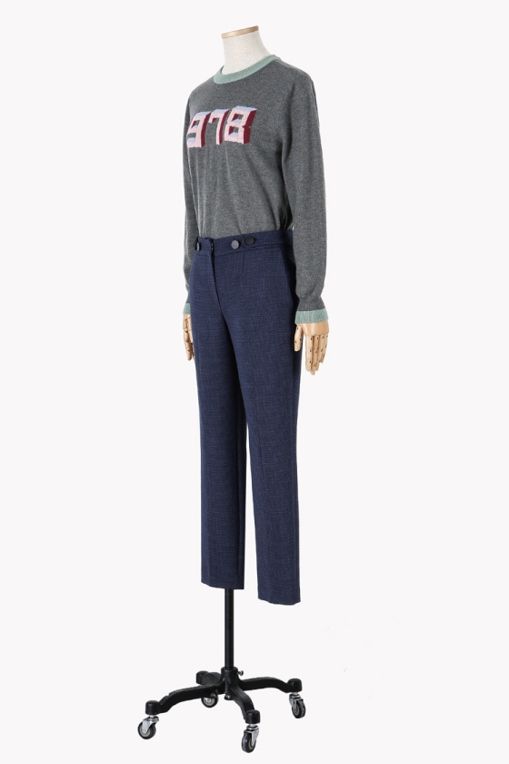 디자이너 브랜드 Dice Kayek과의 콜라보레이션 제품입니다.잔잔한 체크패턴과 클린한 라인이 돋보이는 데일리 팬츠입니다. 앞면에 절개선이 있어 슬림해보이며, 허리에는 탭과 단추 디테일로 포인트를 주었습니다.