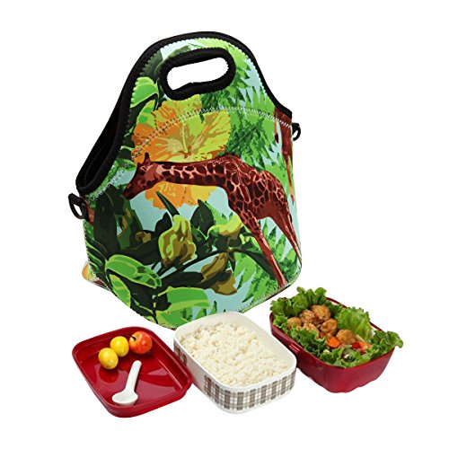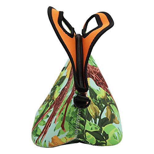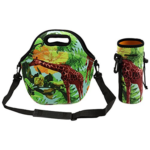 KPAO Waterproof Neoprene Giraffe Lunch Bag Outdoor Travel Picnic Lunch Box with Water Bottle Bag