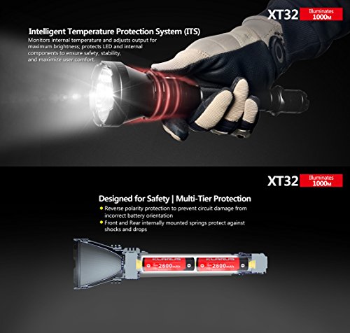 - Full range of options: one-touch Strobe,one-touch Turbo,one-touch Low,Mode Memory function,SOS,multiple modes,side switch lock-out,Intelligent Battery Indicator, ITS Intelligent Temperature Control System.