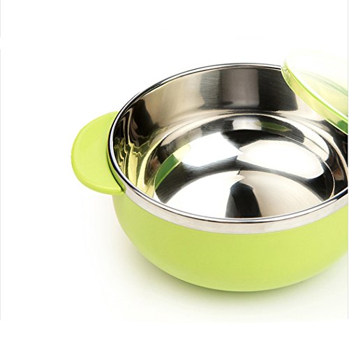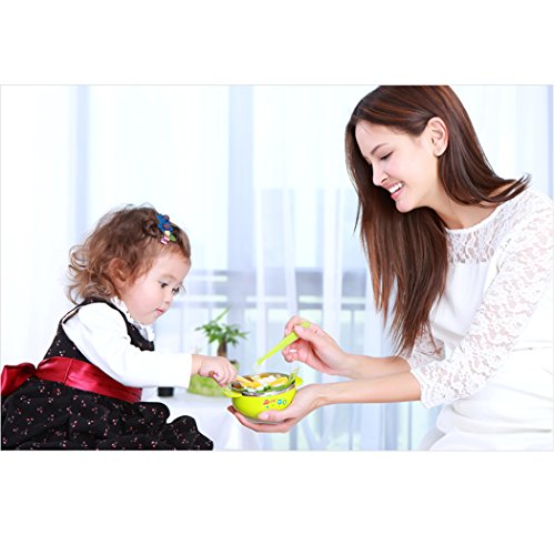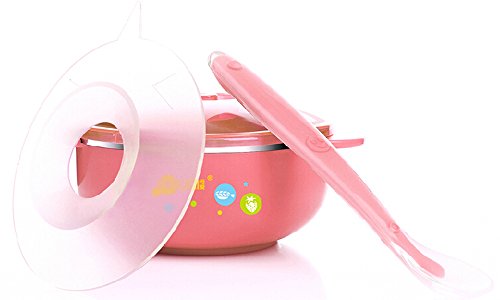-. Feature : BPA free material: FDA standards. 100% food-grade safe, passed Europe CE Quality Security Identification. / Soft silicone spoon easy for baby to feed themselves and learn to eat solid food. / Strong Suction cup with a spill-proof design can set the bowl securely on the table or on the highchair ,preventing from spilling the food or dropping the bowl to the floor. / Stainless steel cup insert is hygienic and durable, thermal insulation keep the food heat and fresh, easy to store food. / Anti-scald bowl design can effectively prevent baby scalded by hot liquid or steam during the mealtime.