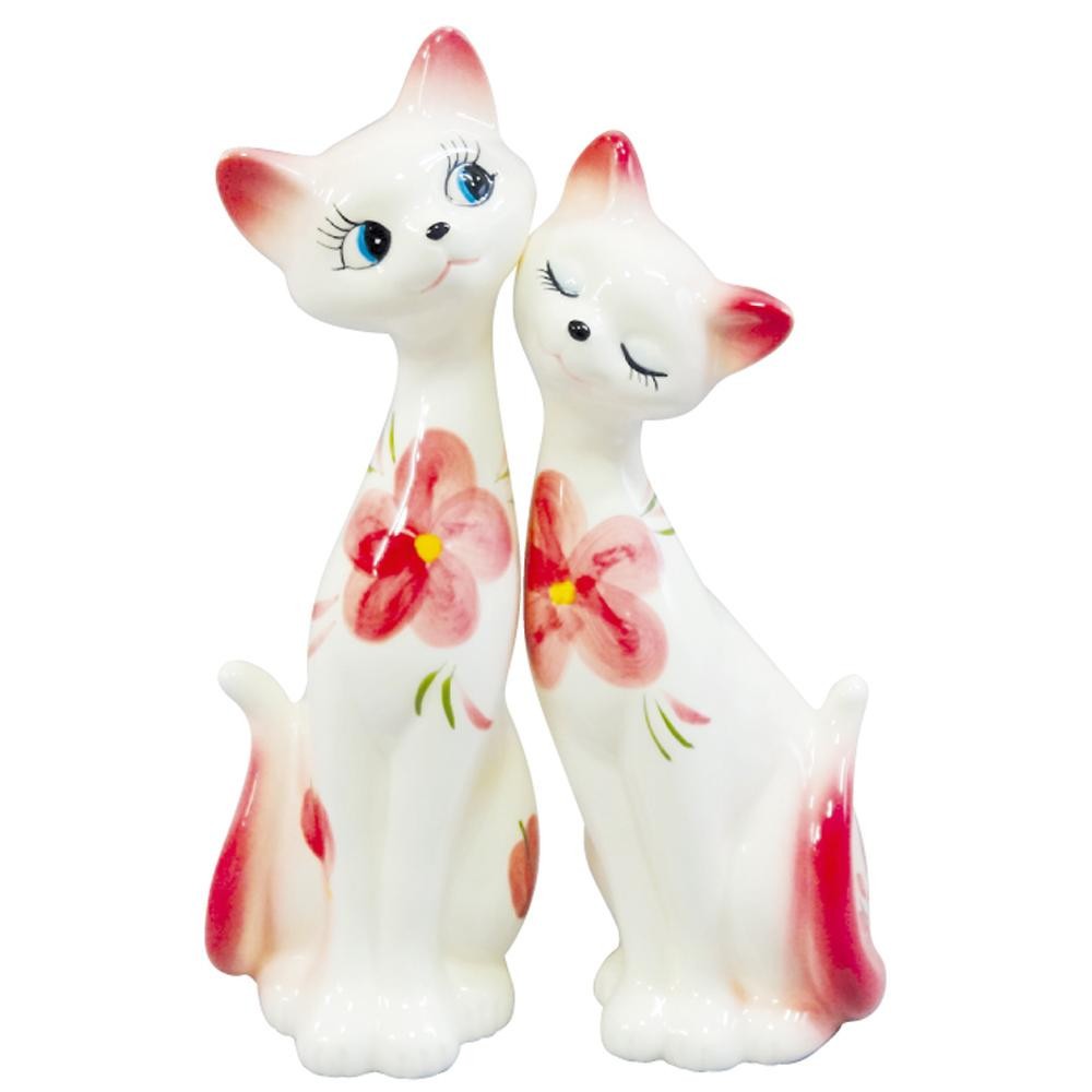 猫好きにはたまらない、お花の模様が華やかな猫のペア置物です。