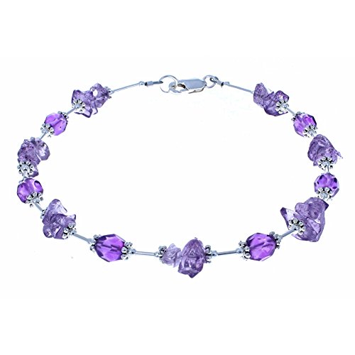 -. Title : Womens Purple Czech Fire Polished Glass, Purple Glass Chips & Sterling Anklet with Daisies