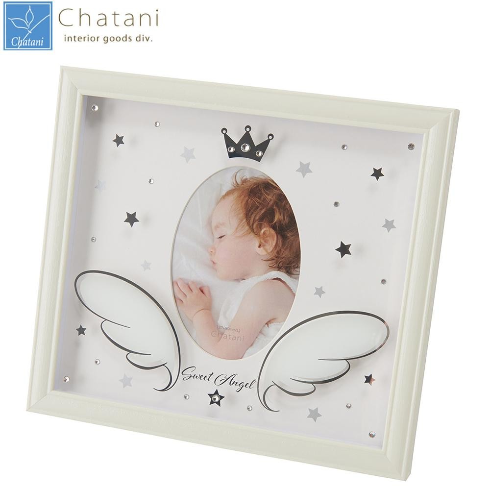 | 写真が美しく映えるピュアなホワイトをメインカラーに、シルバーやラインストーンなど控えめに輝く、さり気ないアクセントがポイント。赤ちゃんの写真に寄り添う天使の羽は、まるで浮いているかのようなデザインです。ご自宅用はもちろん、出産祝いなどのギフトにもオススメです。 |