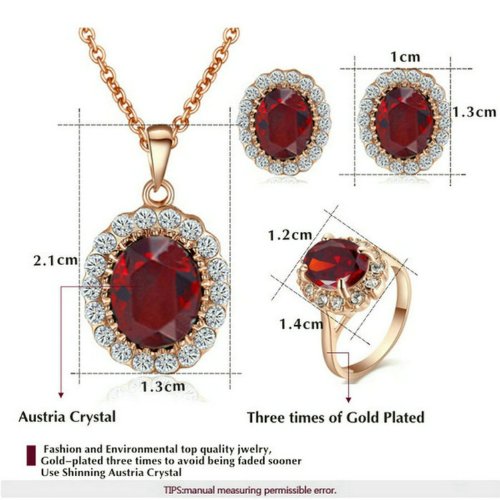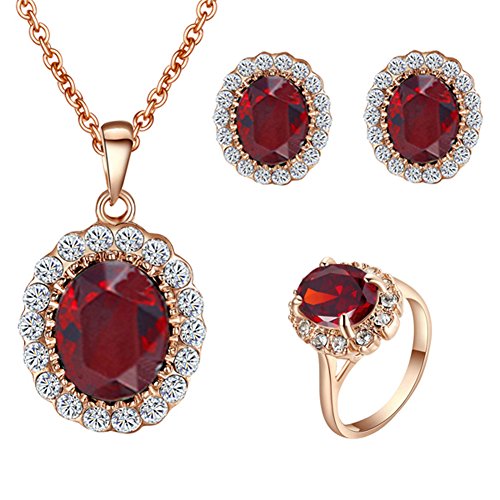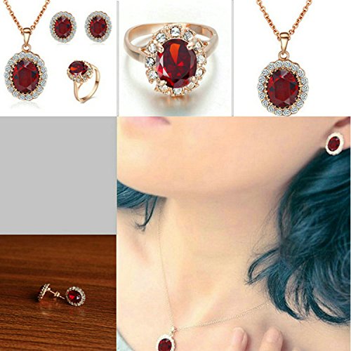 -. Title : [Jewelry Sets] Yoursfs Beautiful Red Crystal Necklace & Earrings & Rings Set,18K Rose Gold Plated Wedding Sets,Cocktail CZ Pendant & Studs Set