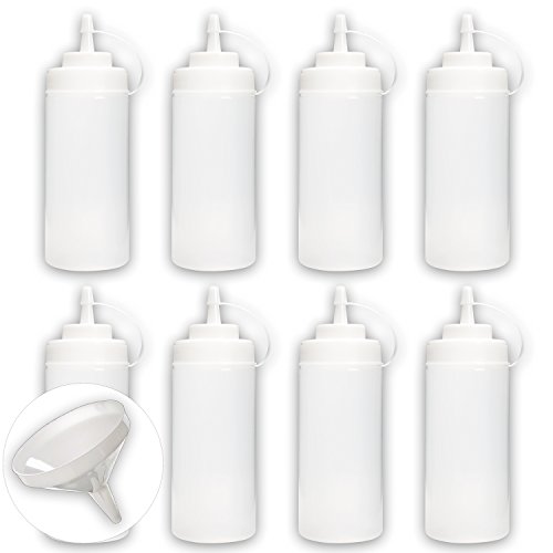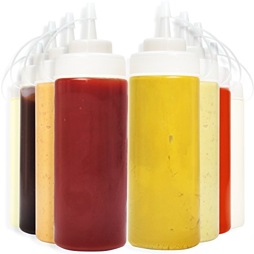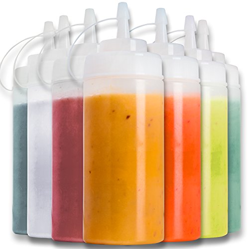 8 PACK - squeeze bottles are ideal for controlled dispensing of ketchup, mustard, mayo and dressing on sandwiches and salads. Caps prevent spillage and keep the contents fresh.