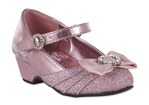 Add some fantasy fun to her fashion with these toddler girls' Disney Mary Jane shoes. Inspired by favorite princess characters, including Belle, Cinderella and Rapunzel on the footbed, these shoes give her all the glamour she can imagine with glittery toes that glint with jeweled bows. A miniature heel lends a hint of grown-up style.Feature