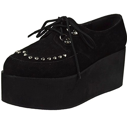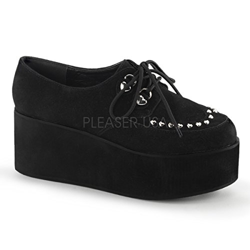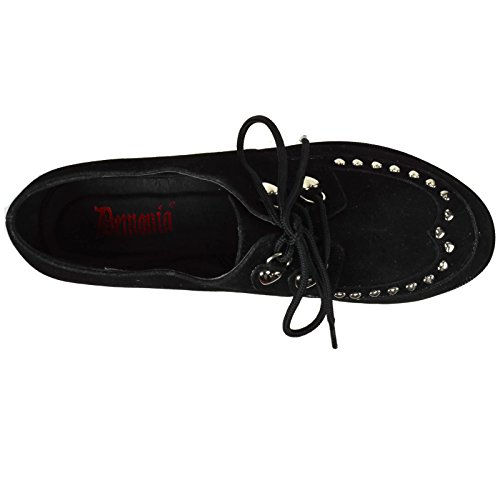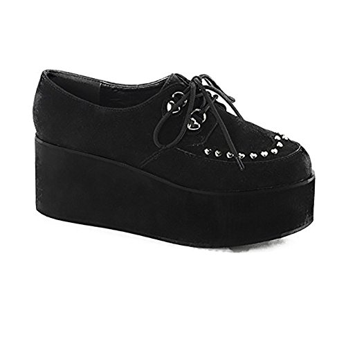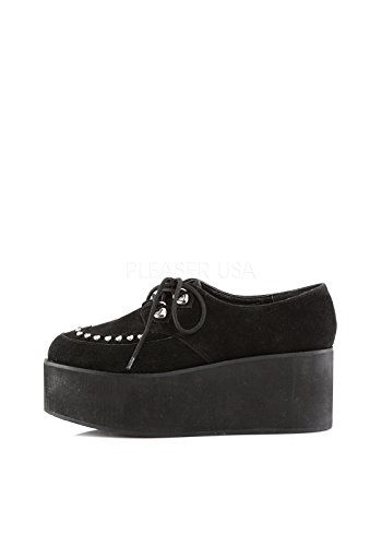 Binding : Apparel Product Description Alternative, defiant, and nonconforming enthusiasts need look no further than Demonia for the most cutting-edge, beyond-the-ordinary line of footwear. Its original meaning and connotation of demonic diva is by no means gender exclusive. Demonia not only reflects the alternative lifestyle, it defines it. This Grip 03 Platform Oxford feature platform, heart shaped studs, D-ring lace and piping detail. Platform height: 2 3/4' (7cm). Material: Vegan Suede. 0