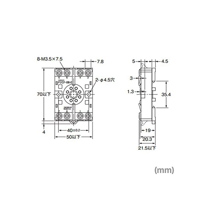 오무론(Omron)(OMRON) P2CF-08-E 형H3CR-HRL DIN레일 설치 소켓(손가락 프로텍트 구조) (표면 접속8핀) NN