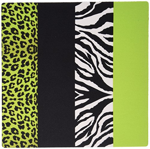 3dRose LLC 8 x 8 x 0.25 Inches Mouse Pad, Lime/Green/Black/White Animal Print Leopard and Zebra (mp_35440_1)