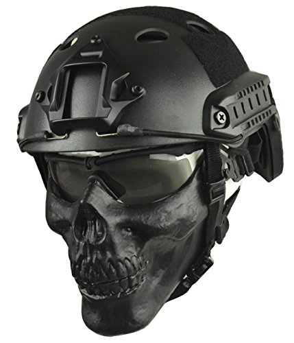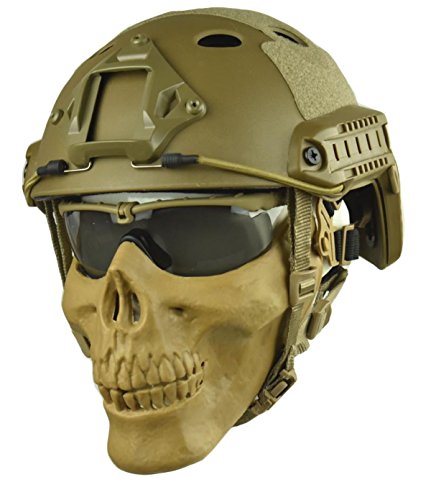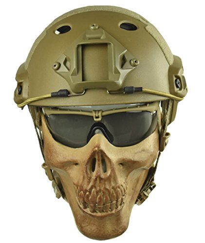 -. Feature : PJ Type Tactical Fast Helmet , Half mask, goggles perfect combination,Give the wearer the full range of protection,High Quality,Lightweight But Durable / Adjustment Rear Dial Knob and suspender straps and chin for Head Size adjustment,Head circumference 54-62cm (21.2-24.4 inch). / Accessory Rail Connectors for attachments with other gear,such as flashlights, camera, visor and so on .Velcro Panels Allow Fitment of Patches, IFF, Safety Lights, and Nametapes / Wearing more stable, Mask inside a EVA pad cushion design, can withstand external impact / Mutilple Use: Suitable for airsoft, paintball, training, climbing or other outdoor sports