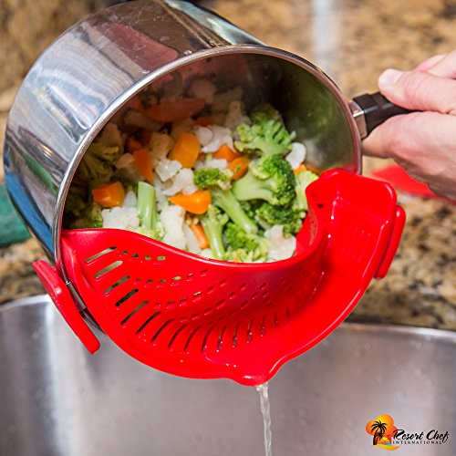 - ❄ EASY TO USE - This universal clip-on strainer will attach snugly to most pots, bowls, or pans for easy, no fuss straining. Quick and E-Z!
