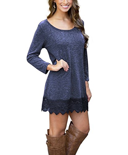 Songbai women casual tunic dress features lace hem and cotton fabric which has a good stretchability, sexy and comfortable, simple but elegant