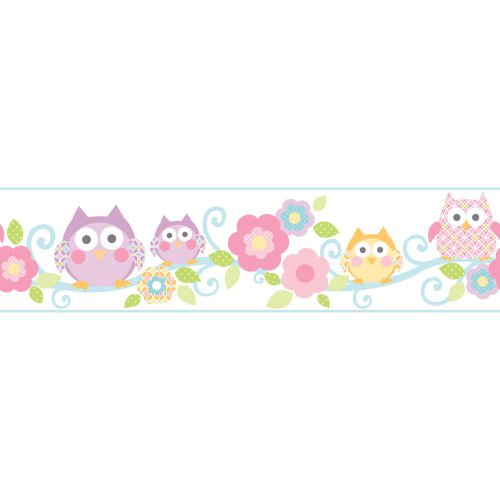 York Wallcoverings KS2214BD Cool Kids Owl Branch Border, Bubble Gum/Strawberry Shake/Lavender/Robins Egg/Kiwi/Snow/Butterscotch