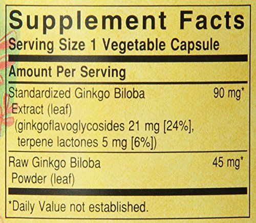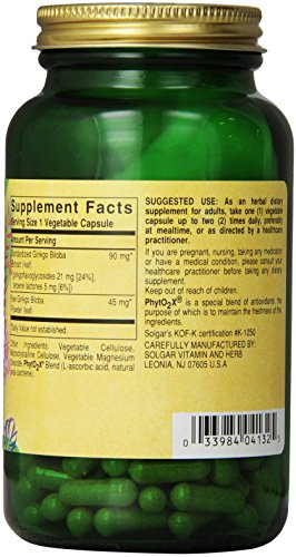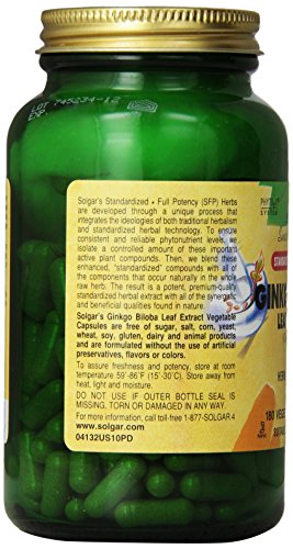SOLGAR STANDARDIZED FULL POTENCY GINKGO BILOBA LEAF EXTRACT VEGETABLE CAPSULES, 180 COUNT
