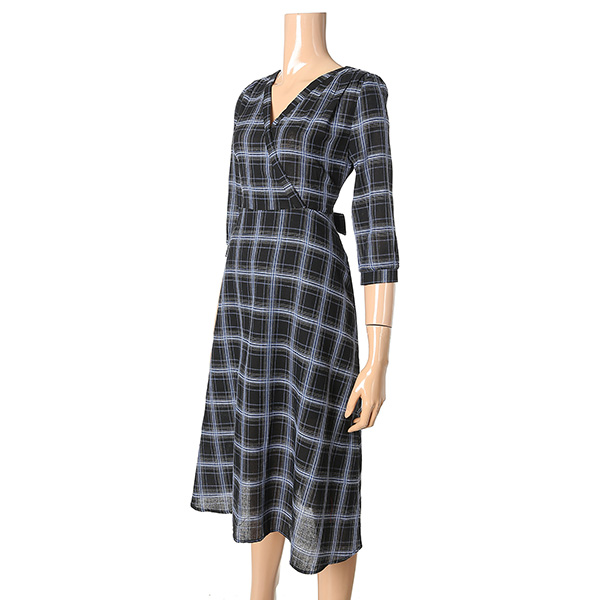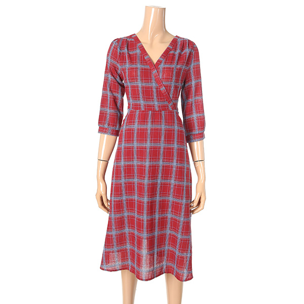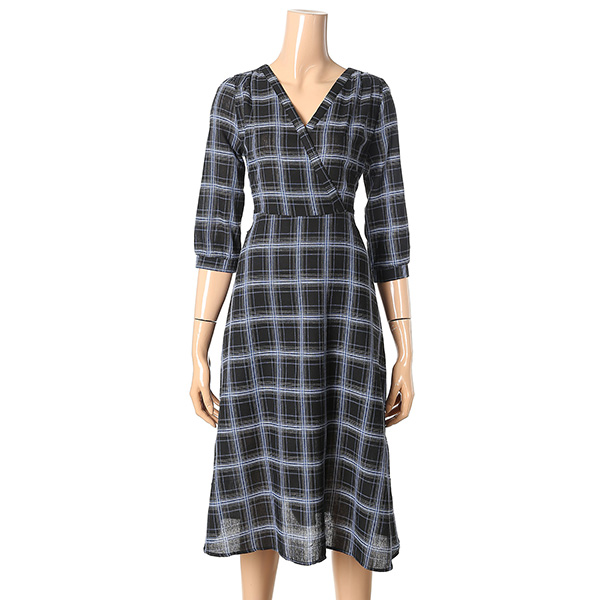 깔끔한 컬러에 체크패턴으로 포인트를 준 V넥 원피스 입니다.