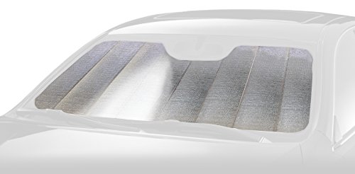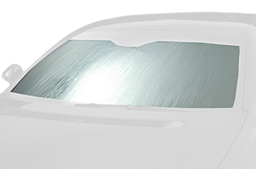 The Intro-Tech Automotive Custom Auto Shade is manufactured using a superior quality multi-layered material with a metalized outer film that reflects harming UV rays. Computer precision cut for a custom fit, it reduces inside temperatures up to 40 degrees Fahrenheit. It protects leather seats from becoming hot and cracking while keeping the steering wheel and shift knob comfortable to the touch. Beautifully finished with a UV resistant, non-abrasive velour binding; it is easy to roll up and an attached Velcro strap makes stowing a breeze. Lifetime warranted, and designed to perform, this interior saving accessory is a must have for all owners concerned with lowering temperatures inside their parked vehicle. Available in over 2,000 custom fit windshield applications for cars, trucks, SUV's and minivans.Feature