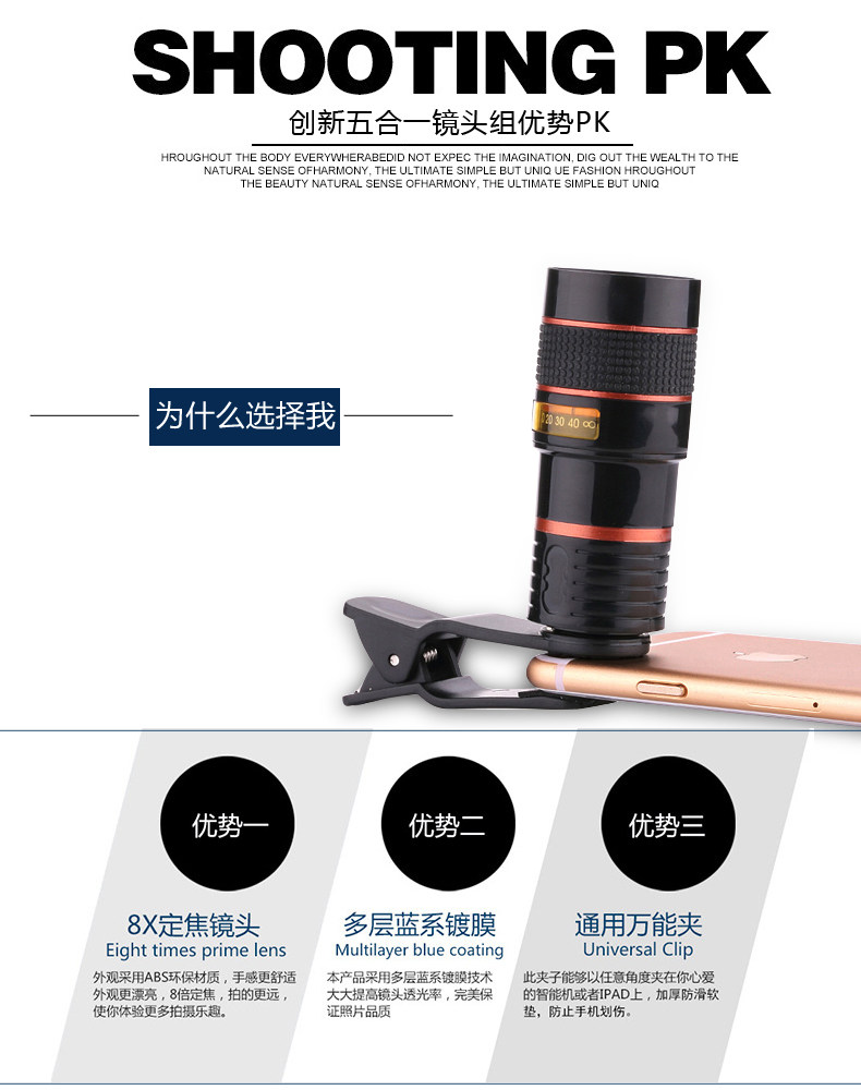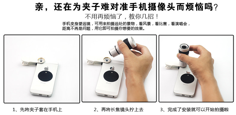 Note: 99% of the applicable market phone / tablet Apple millet Huawei Samsung 8x telephoto lens mobile phone telescope lens, wide-angle lens, can take your phone not shoot the place! I wayward! I would love to shoot!