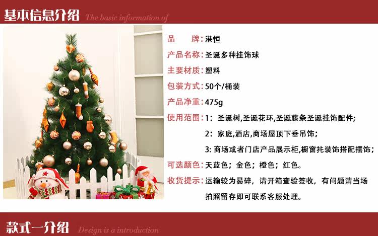 港恒圣诞节装饰品 圣诞树套餐装饰彩球挂件 桶装圣诞球圣诞用品