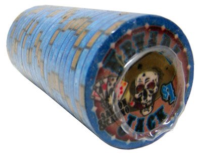 All artwork is printed directly on the chip using a dye-sublimation process. Features tons of great details: marbled and striped edges, Old West style, and Nevada Jack himself holding the “Dead Man’s hand.”