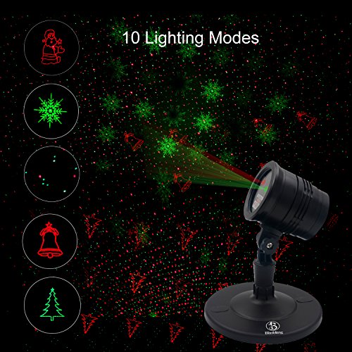 ONE BUTTON CONTROL: Red and Green Outdoor and Indoor Laser Lights for Christmas and holiday. Single Green, Single Red, Green&Red(moving, flashing and static) can be chosen by pressing the one button and the flashing pattern can be changed (Total 10 pattern).